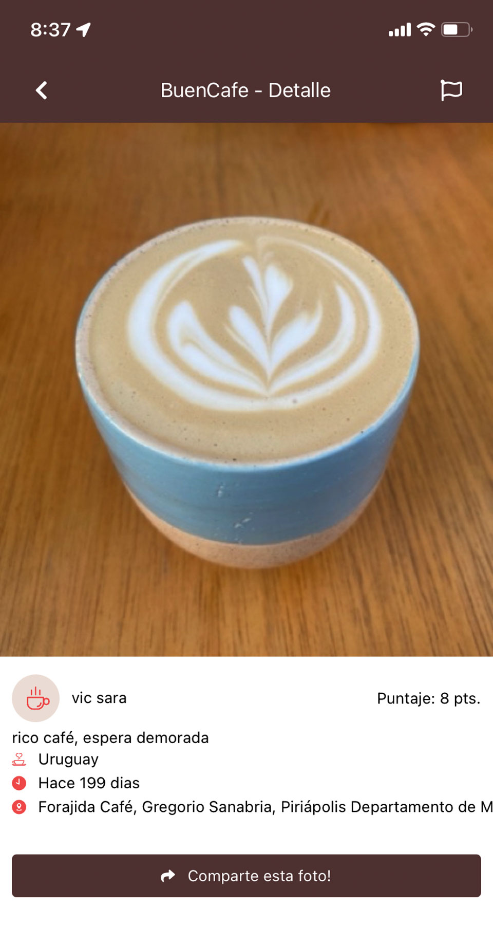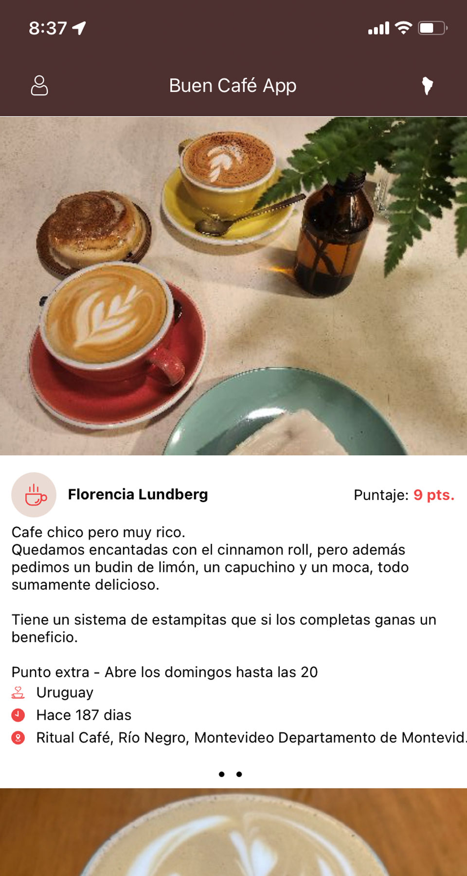 Buen Café App Client: Buen Café App Website: buencafe.app Date: July 18, 2023 Services: App 01. La idea Generar una aplicación para celulares que nos permita descubrir en todo momento donde tomar un «buen café», dando tambien la oportunidad de compartir mediante una foto y unas pocas lineas de texto, lo que fue la experiencia en el nuevo café o en el café de todos los días. El proyecto tuvo su primera versión de la App hace 5 años, se publico el 27 de enero del 2019. Llegando a estar entre las primeras 10 App de alimentos ese mismo año. El año pasado se re hizo por completo en React Native para un mejor funcionamiento y estar preparada para nuevas implementaciones que saldrán este año Experiencia de usuario Se busco que la experiencia sea natural para tener una curva de aprendizaje rápida. Diseño e Iconos El diseño se vaso en lineas y curvas, simplificando la apariencia partiendo de un logo con pocos elementos. Crecimiento La aplicación esta preparada para expandirse a muchos mas países y poder crecer exponencialmente. 02. Experiencia Se busco una interfase sencilla, con pocas pantallas y que sean claros las pantallas, el feed de fotos que suben los usuarios, el mapa de donde estan las cafeterías, espacio para subir una foto, el listado de cafeterías y el perfil de usuario. 03. Otras funciones El proyecto no es solo la App, tambien cuenta con 3 partes importantes, uno es el administrador del contenido, el sitio para dar de alta a las cafeterías y un espacio donde ver la fotos que suben los usuarios sin necesidad de tener la App. (buencafe.app/fotosusuarios) Administrador y Push El proyecto cuenta con una administrador que permite el manejo de todo el contenido, tanto las fotos subidas por los usuarios como las cafeterías dadas de alta. Así mismo cuenta con la posibilidad de envio masivo de notificaciones Push directo a la Aplicación. Sitio para dar de alta Cafeterías Parte fundamental del proyecto que desarrollamos en el 2021 fue un espacio donde las marcas de café y los dueños de cafeterías, podían dar de alta ellos mismos a las cafeterías. Completando un formulario, cargando la foto, luego eligiendo el método de pago, podían dar de alta su café en la App. Durante la pandemia y hasta ahora el sistema es gratis para sumar una cafeteria. 04. Información general El proyecto esta en constante evolución y mejoras. Se esta implementando varias nuevas funciones que de a poco se iran incorporando a lo largo de este año. Client: Buen Café App Website: buencafe.app Date: July 18, 2023 Services: App Visitar Web