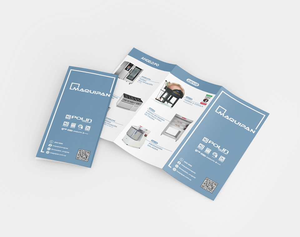 El resultado: un material gráfico que refuerza la identidad de Maquipan como referente en equipamiento gastronómico en Uruguay, combinando diseño, funcionalidad y comunicación efectiva.